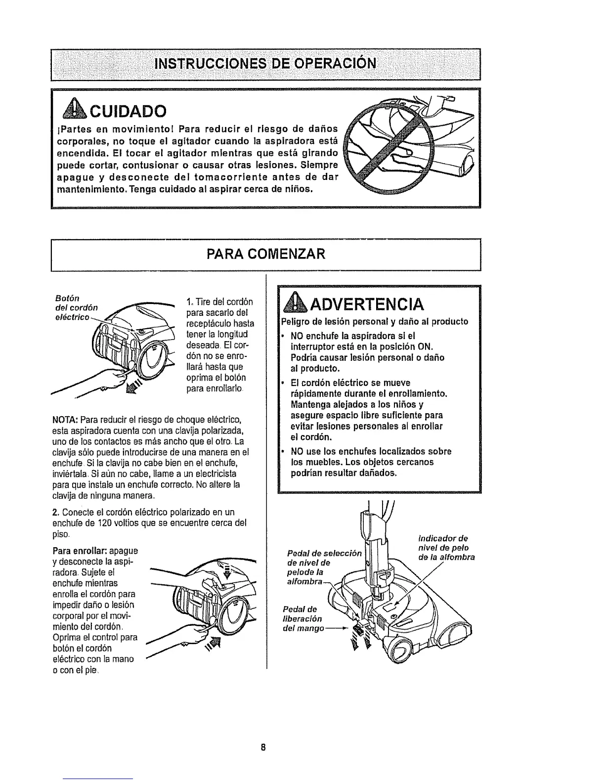 corporales, no toque el agttador cuando la aspiradora est_
