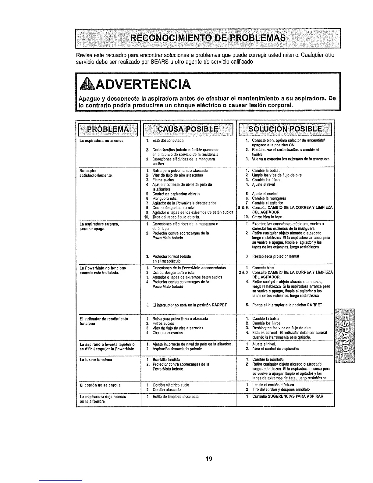 Reviseeste recuadro para encontrarsoluciones a problemas que puedecorregir usted mismo,Cua[quierotro