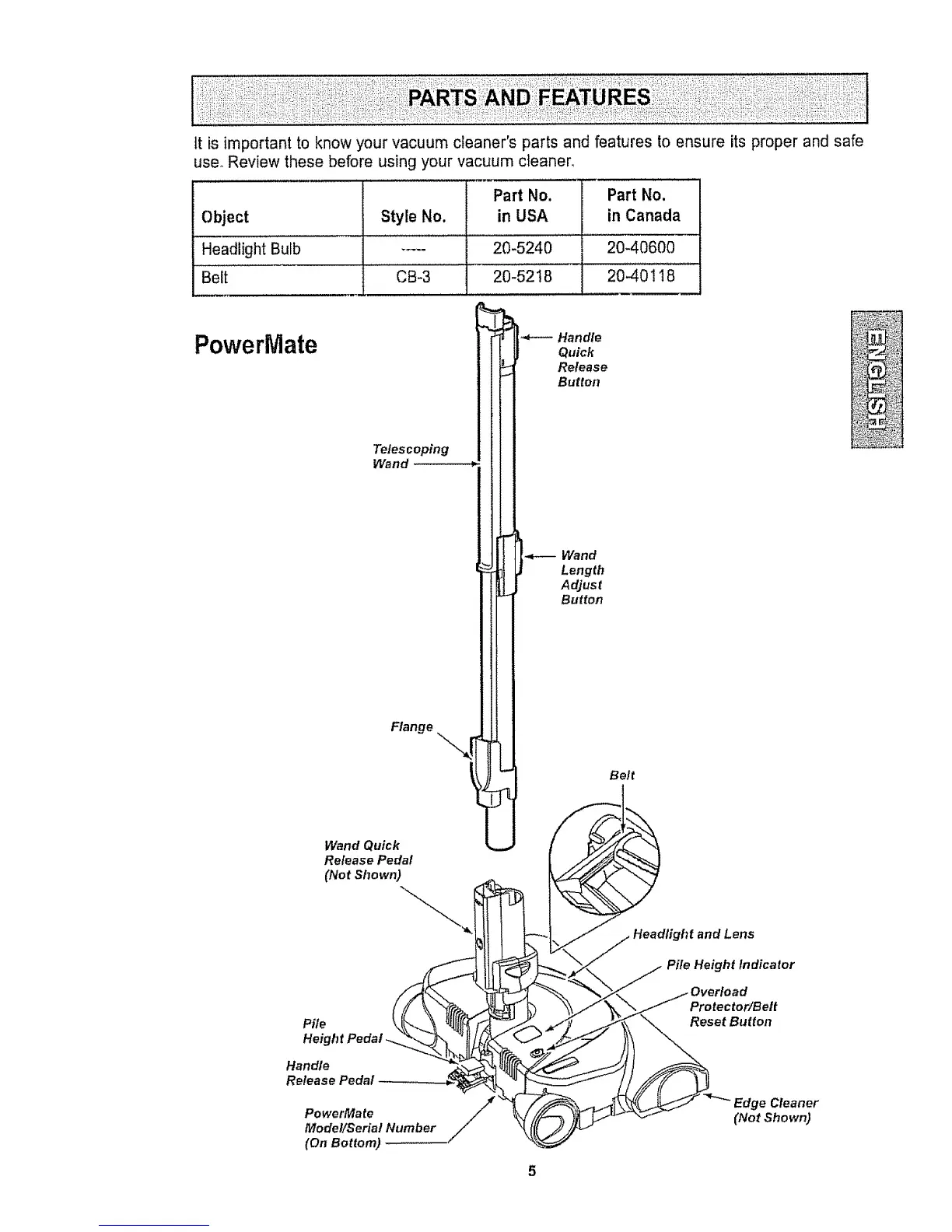 it isimportantto knowyourvacuumcleaner'spartsandfeaturesto ensureits properandsafe