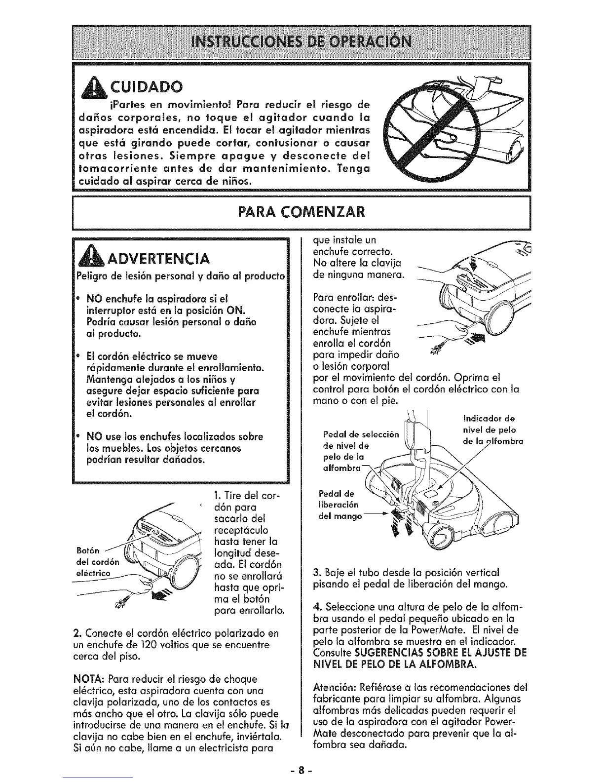 aspiradora est6 encendida. El tocar el agitador rnientras