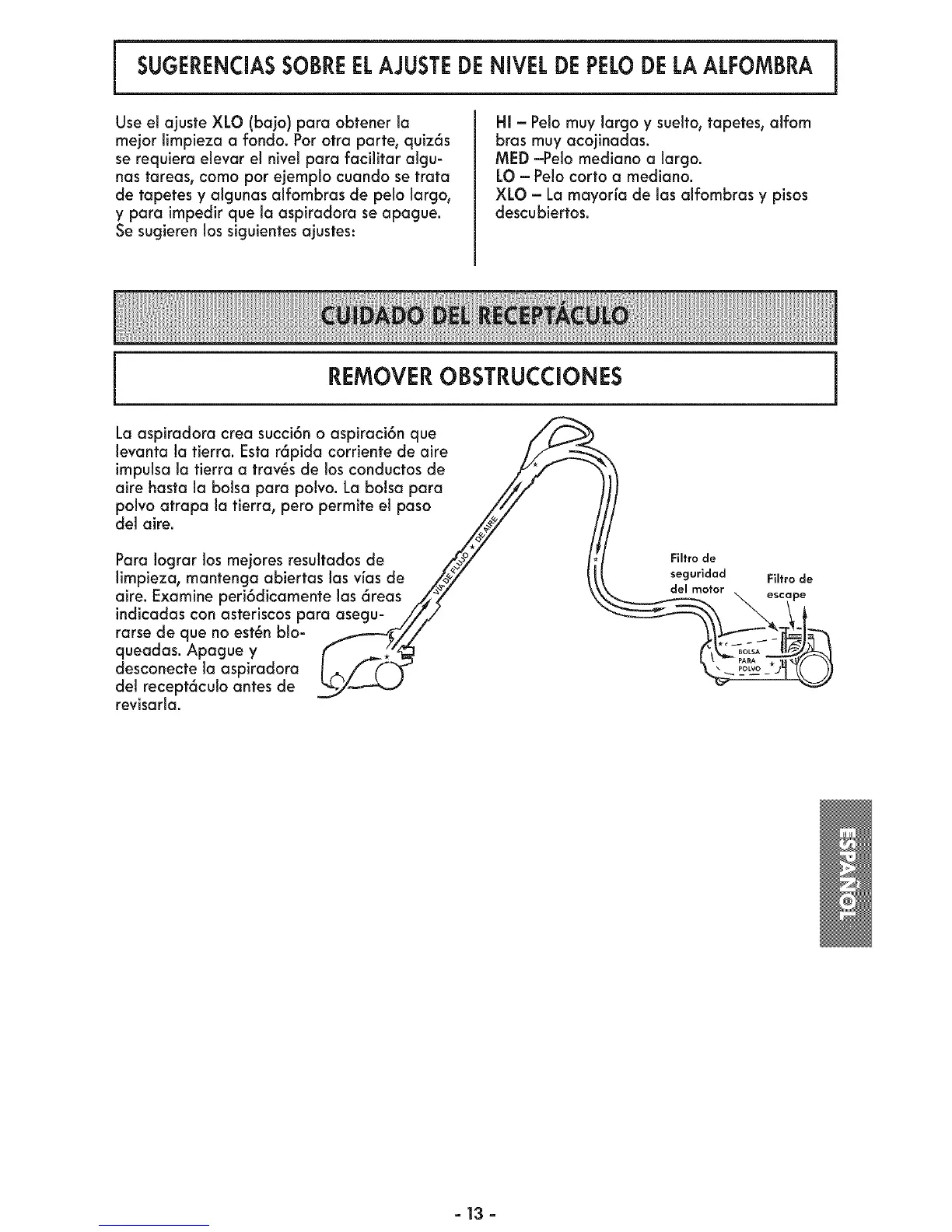 La aspiradora crea succi6n o aspiraci6n que ,/_