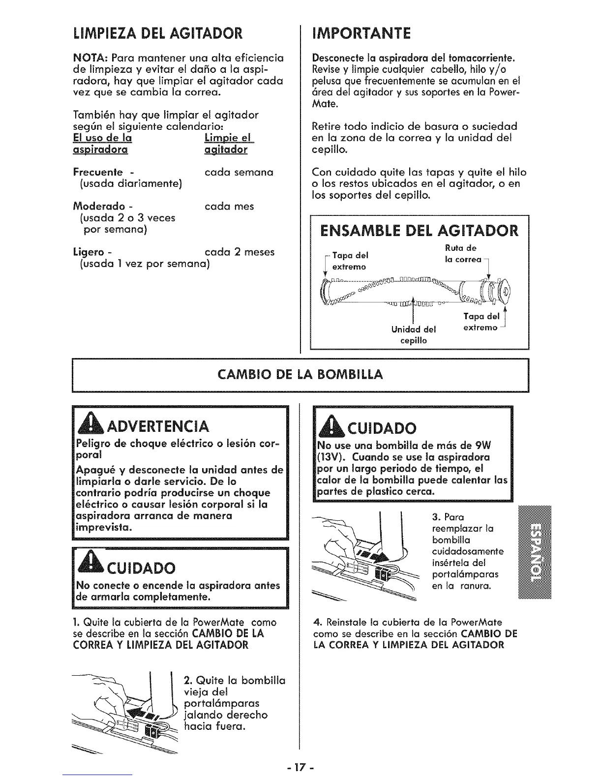 LA CORREA Y LIMPIEZA DEL AGITADOR