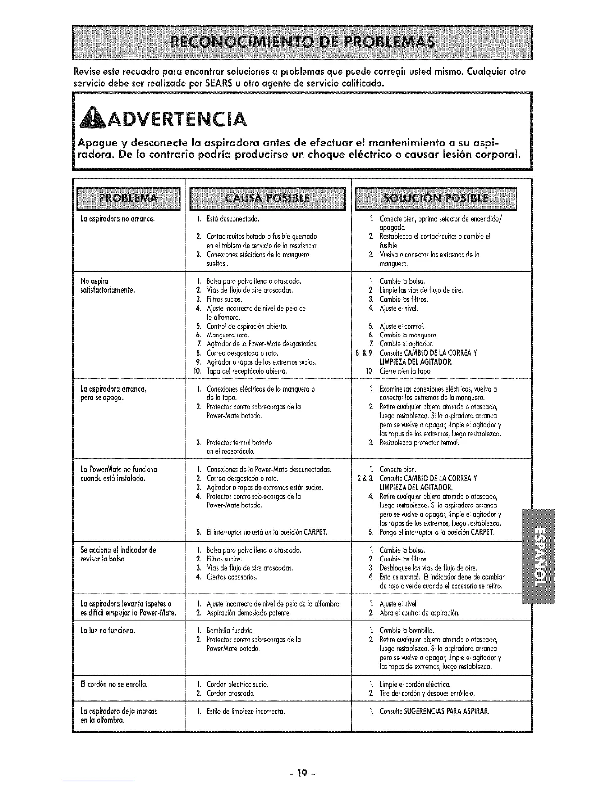 Reviseesterecuadro para encontrarsolucionesa problemasque puede corregir ustedmismo.Cualquier otto