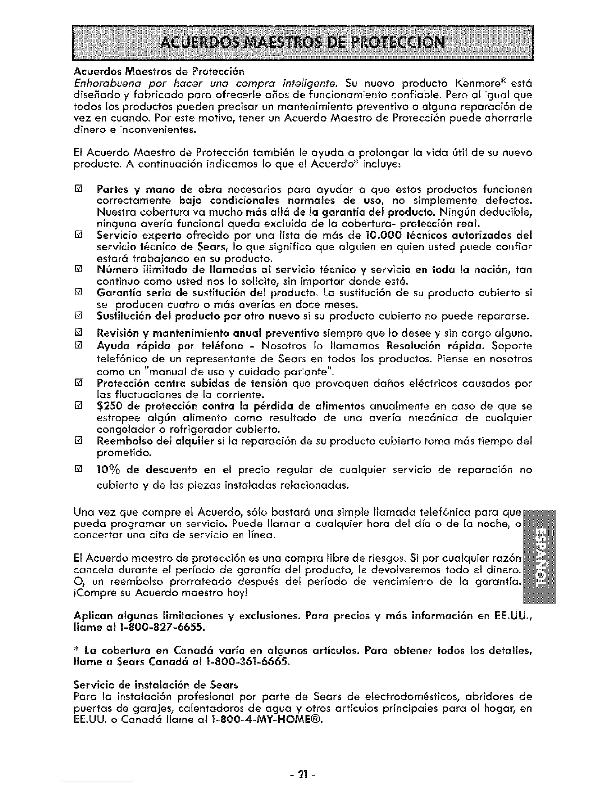 telef6nico de un representante de Sears en todos los productos. Piense en nosotros