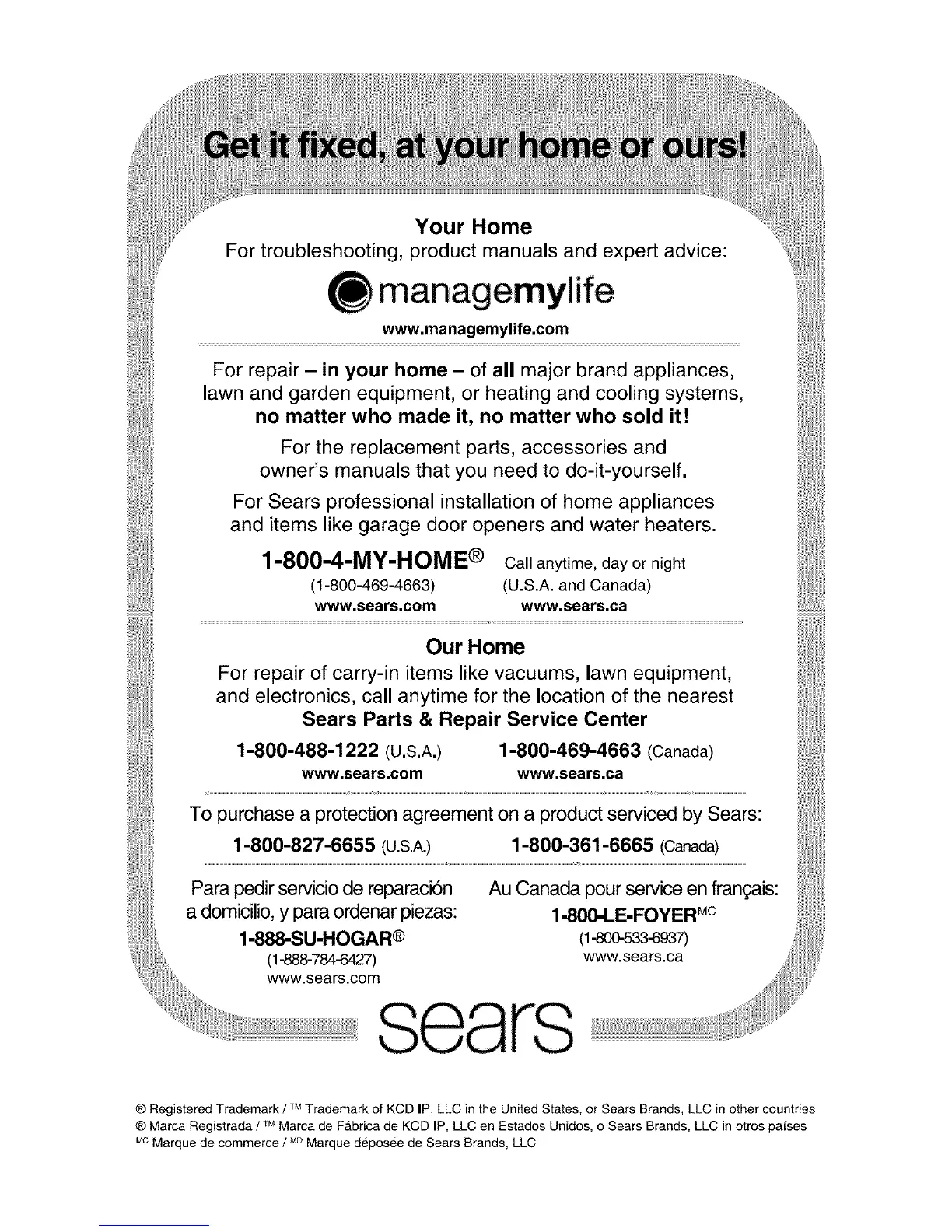 ® Registered Trademark / TMTrademark of KCD IP, LLC in the United States, or Sears Brands, LLC in other countries