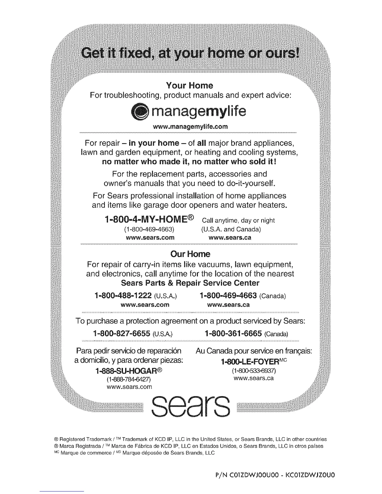 ® Registered Trademark / IM Trademark of KCD JP, LLC in the United States, or Sears Brands, LLC in other countries