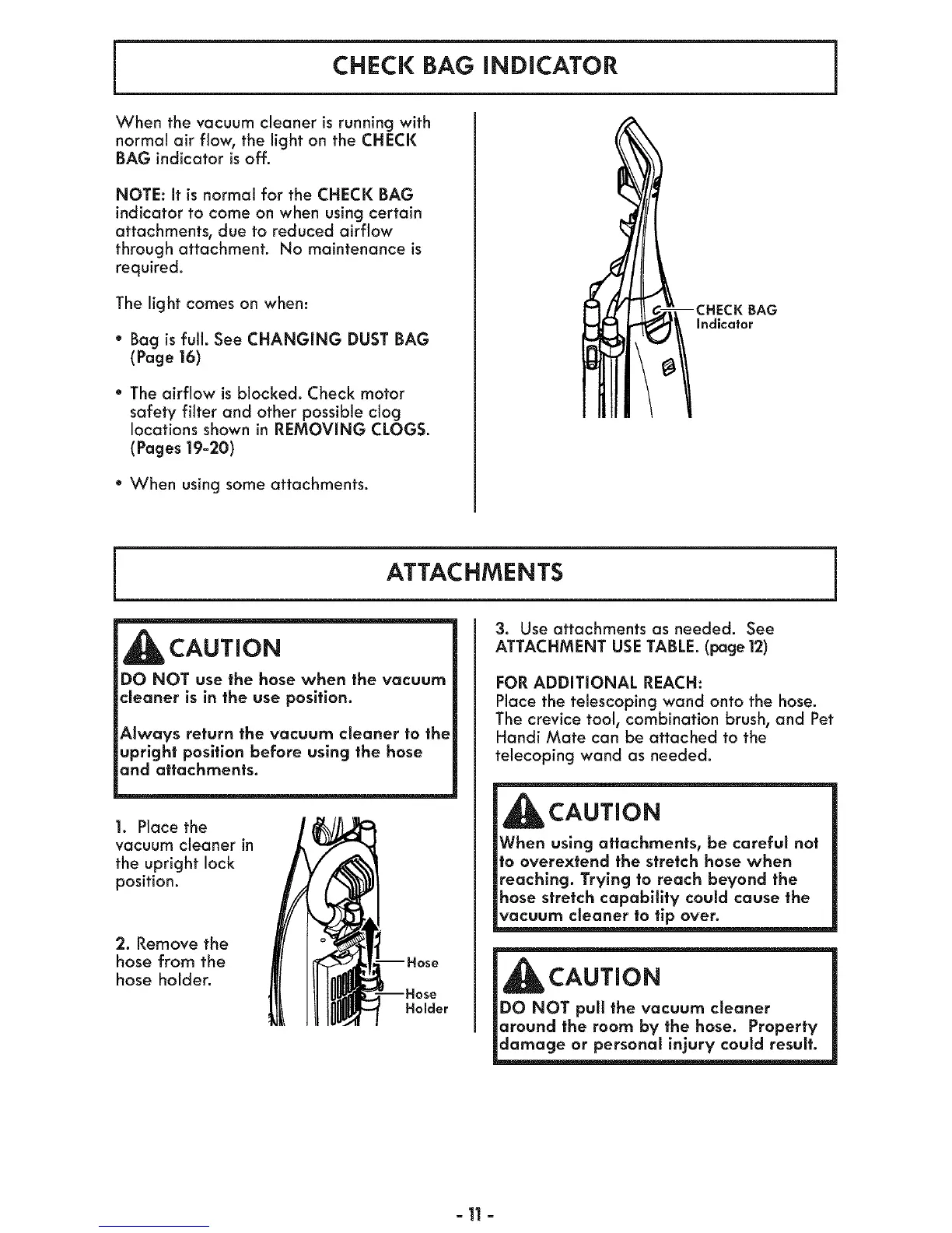 NOTE: It is normal for the CHECK BAG