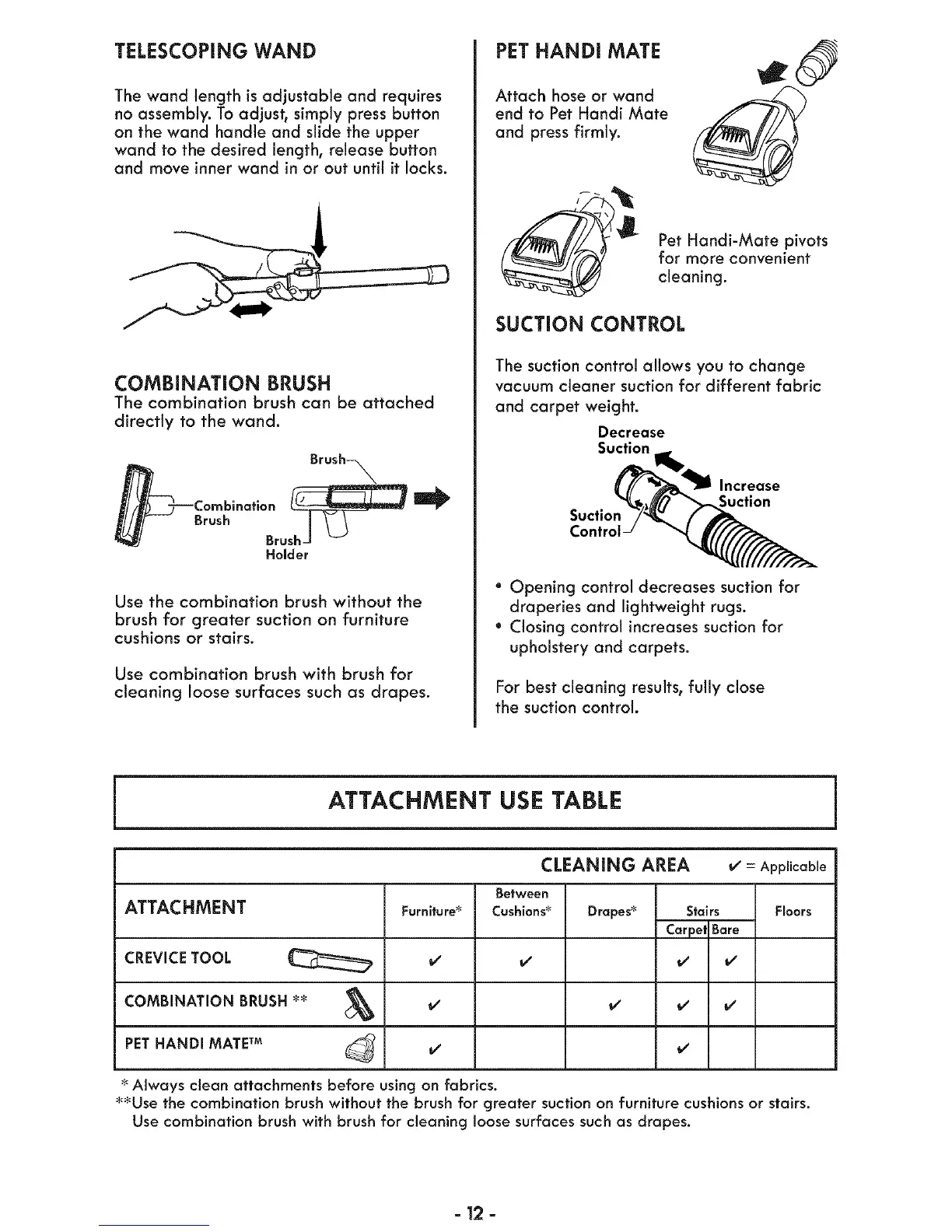 Always clean attachments before using on fabrics.