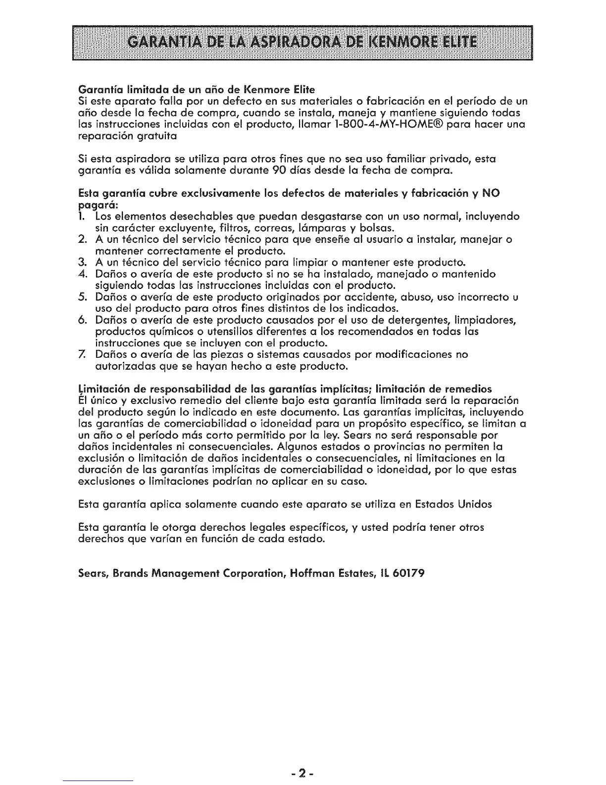 Garanfia lirnitada de un a_o de Kenrnore Elite