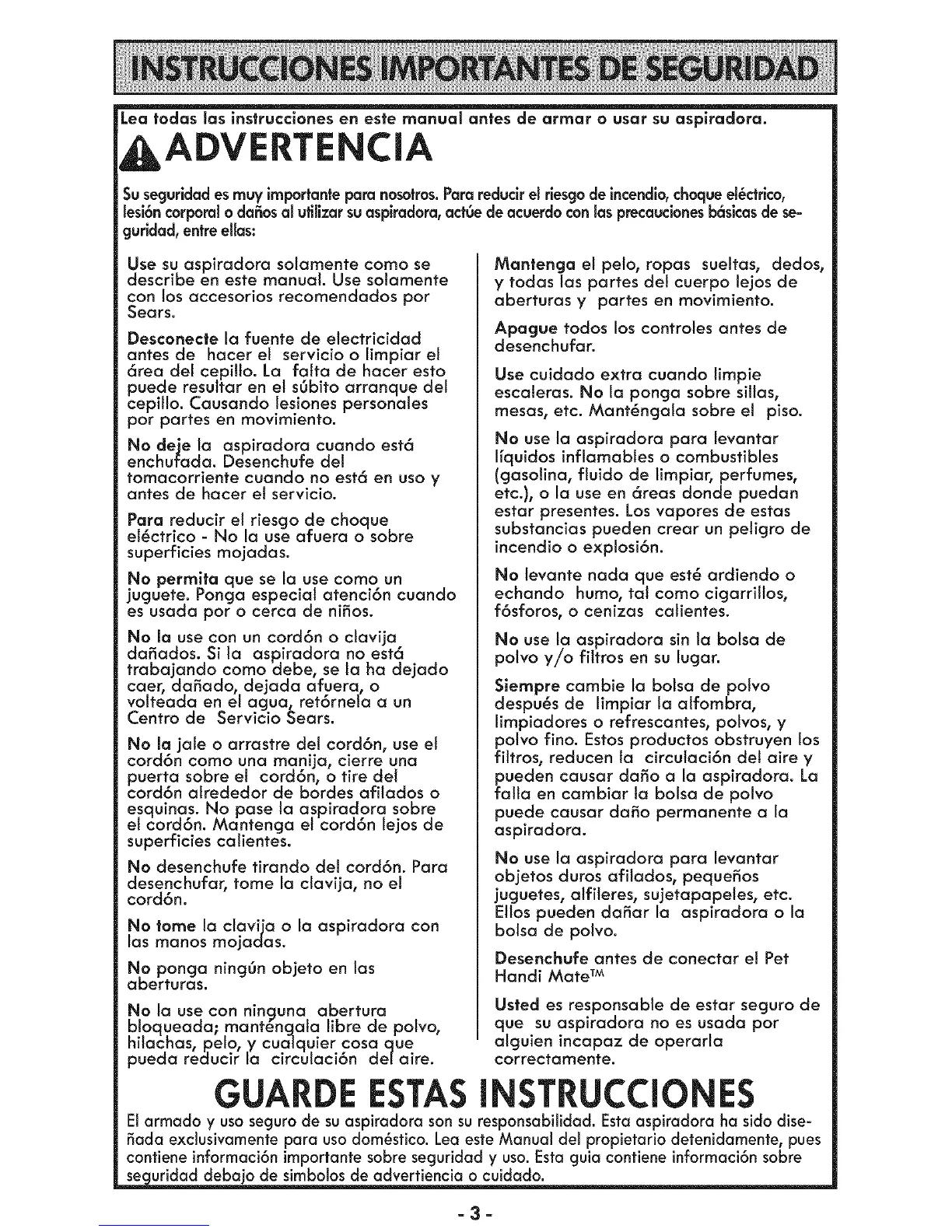 Lea todas las instrucciones en este manual antes de armar o usar su aspiradora.