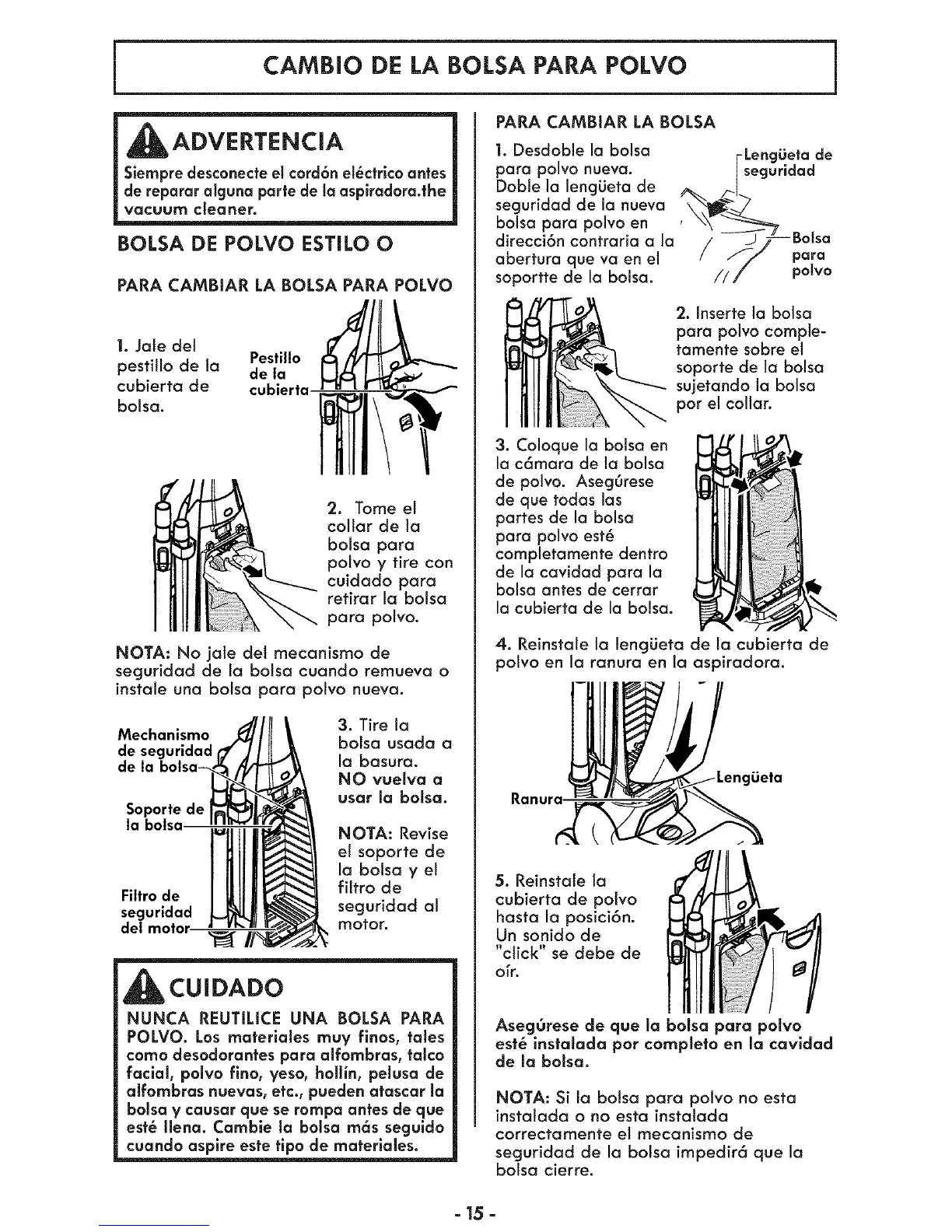 PARA CAMBIAR LA BOLSA PARA POLVO