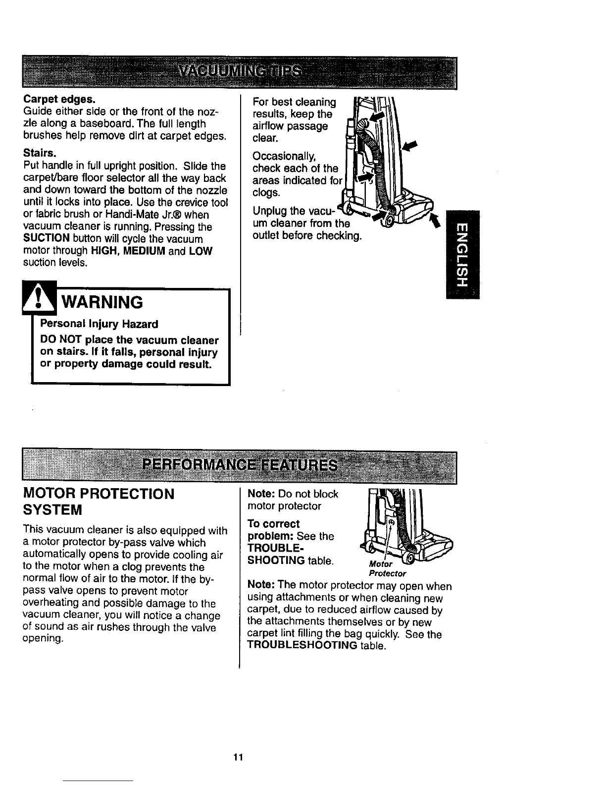 vacuum cleaner is running. Pressing the