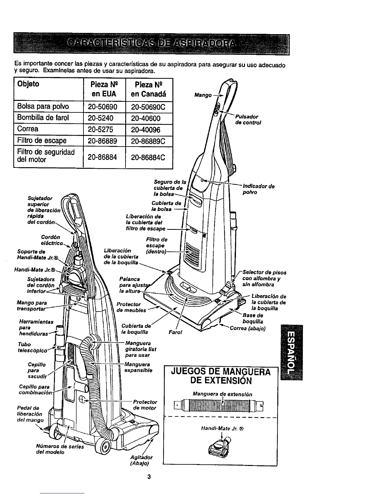 Es importante concer las piezas y caracteristicas de su aspiradora pars asegurar su uso adecuado