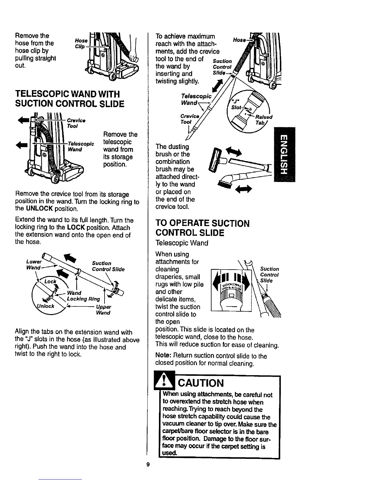 Note: Return suction control slide to the