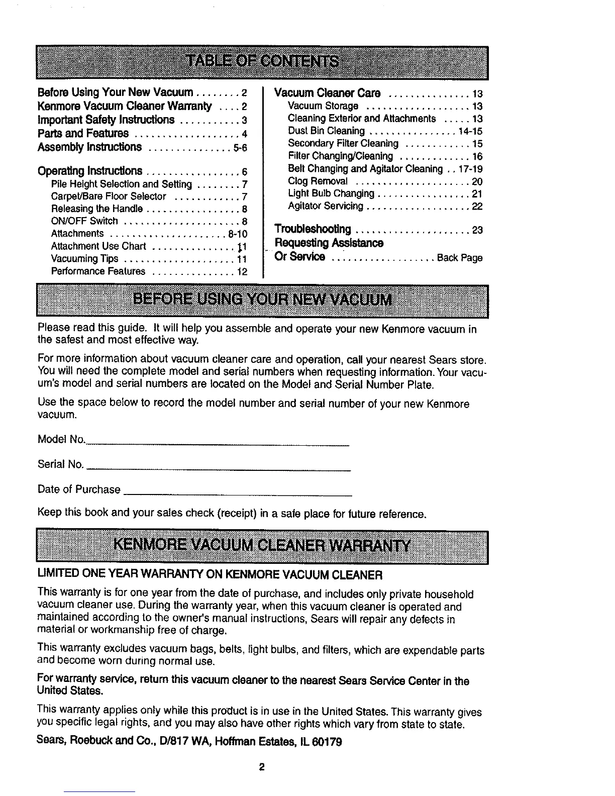 KenmoreVacuum Cleaner Warranty .... 2