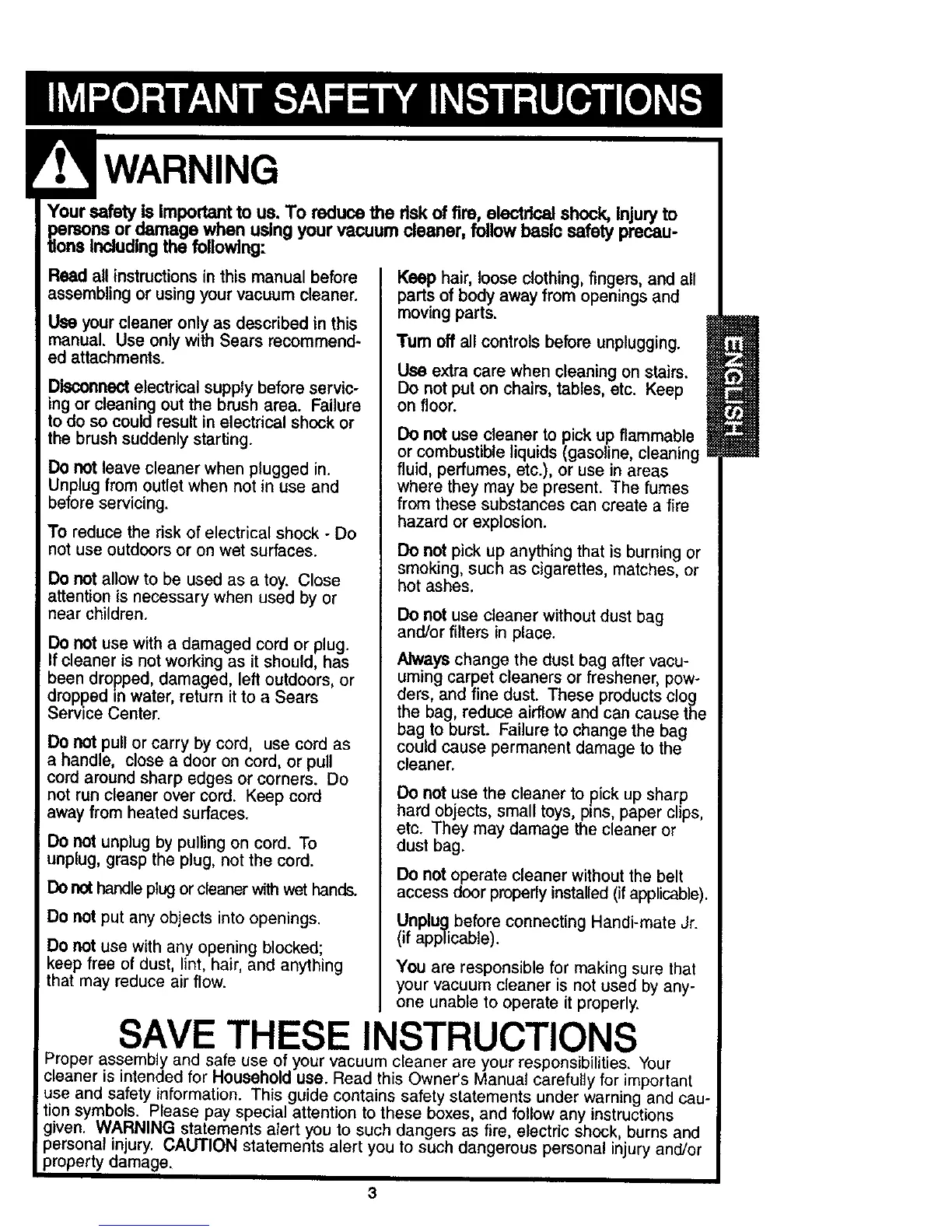 Proper assembly and safe use of your vacuum cleaner are your responsibilities. Your