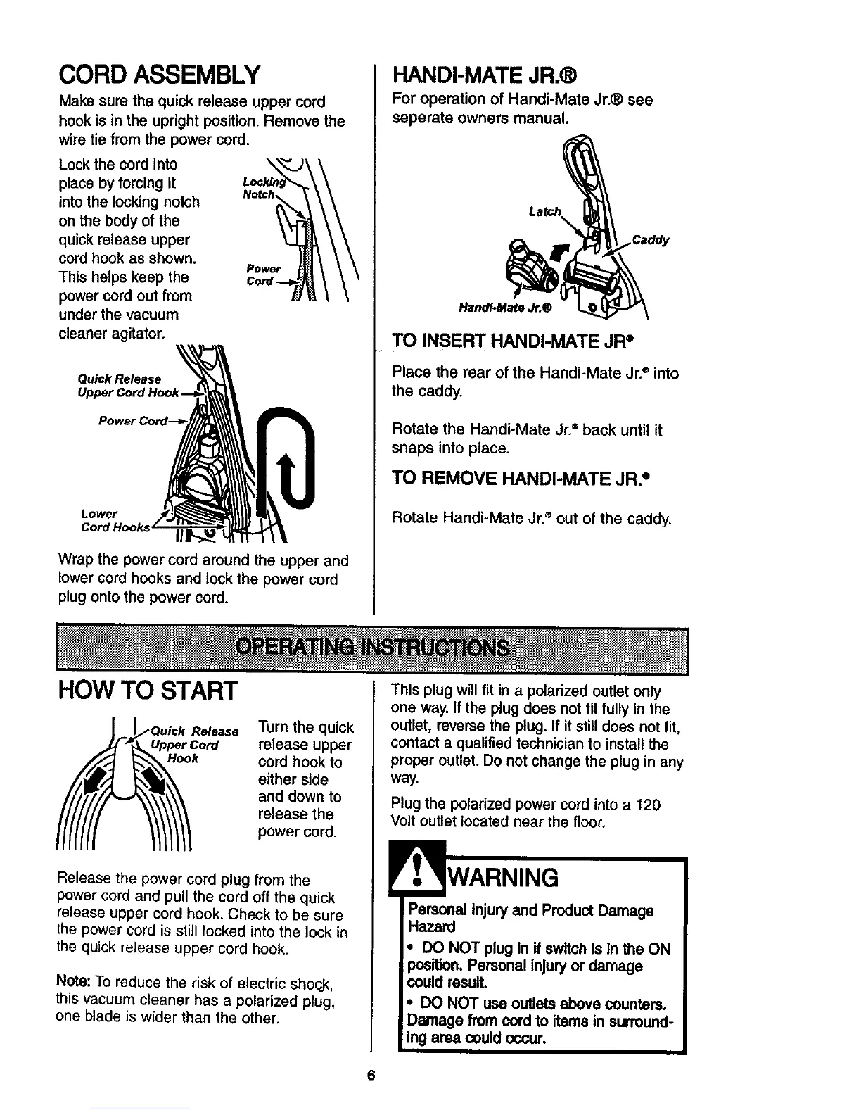 For operation of Handi-Mate Jr.® see