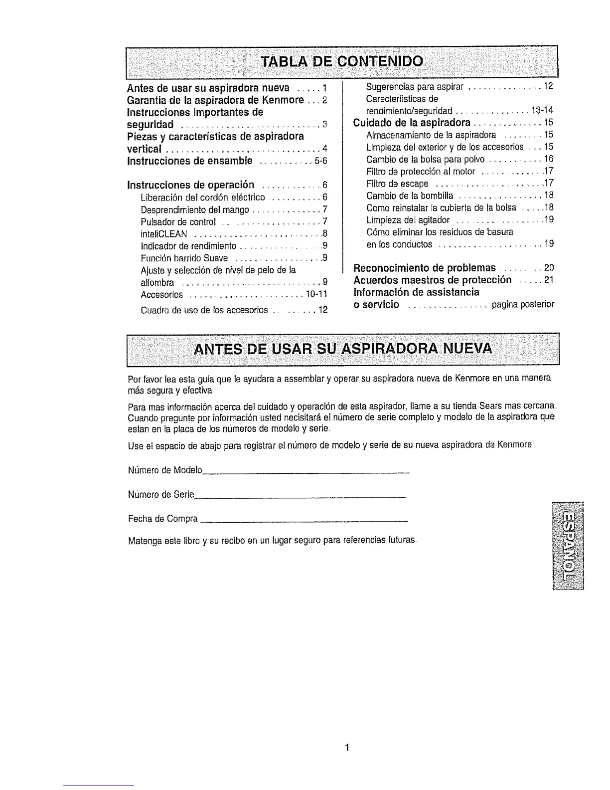 Pot favor lea esta guia que le ayudaraa assemblary operar su aspiradora nuevade Kenmore en una manera