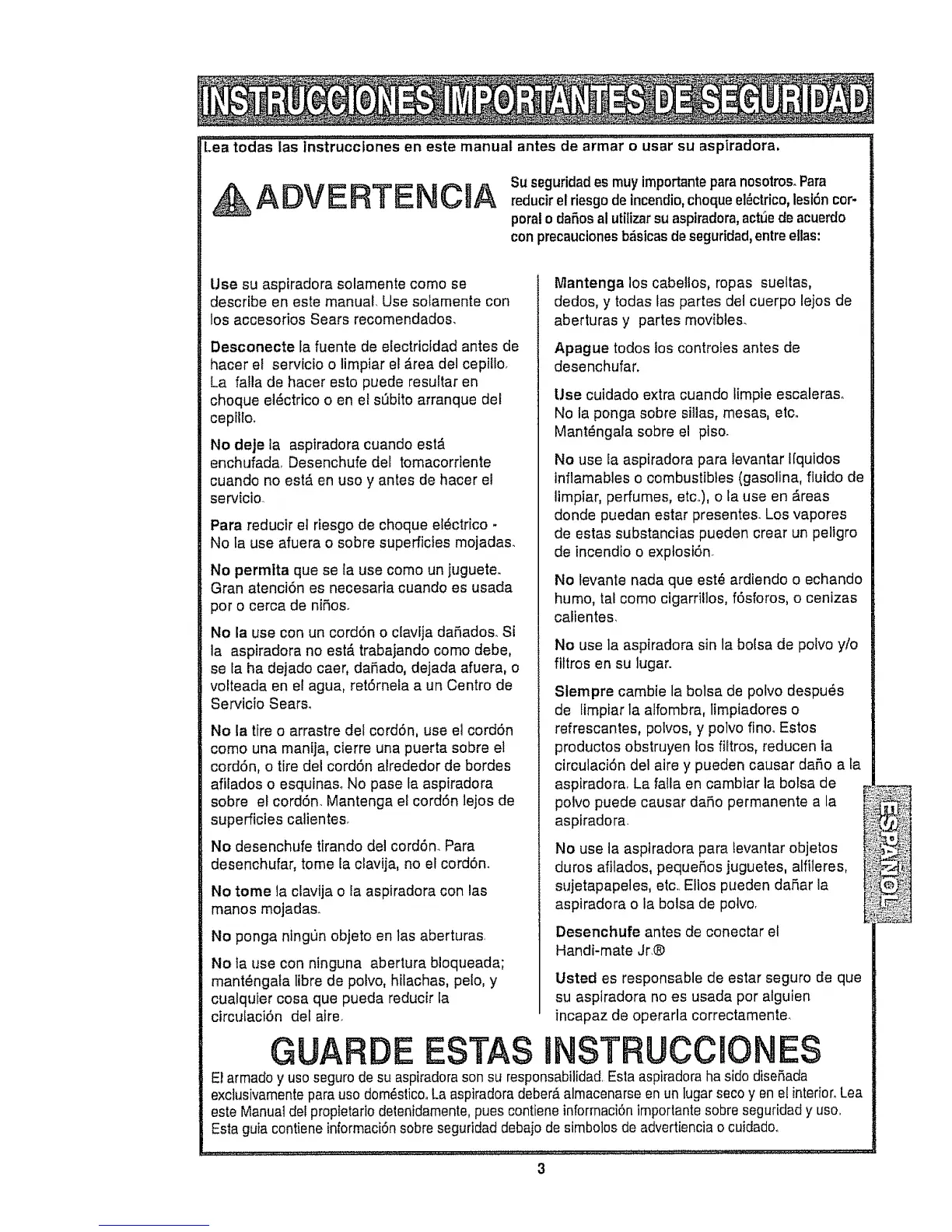 Lea todas las instrucclones en este manual antes de armar o usar su aspiradora.