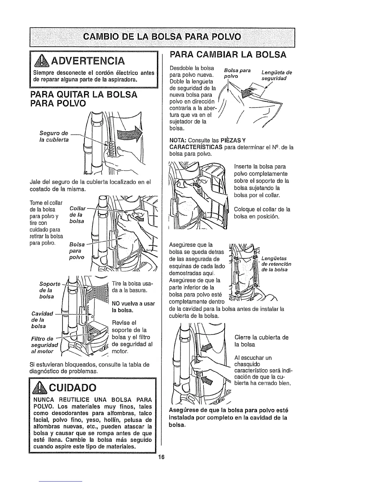 Aseg_rese de que la bolsa para potvo est6