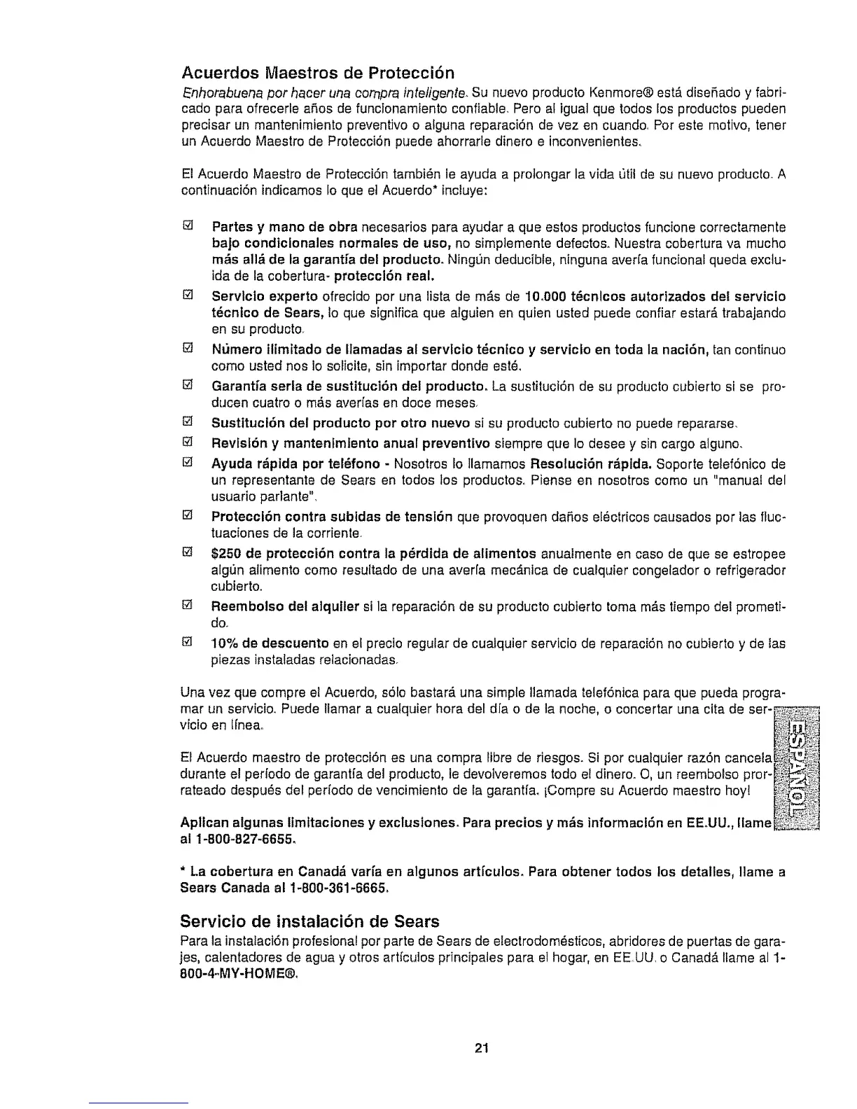 un representante de Sears en todos los productoso Piense en nosotros como un "manuaE del