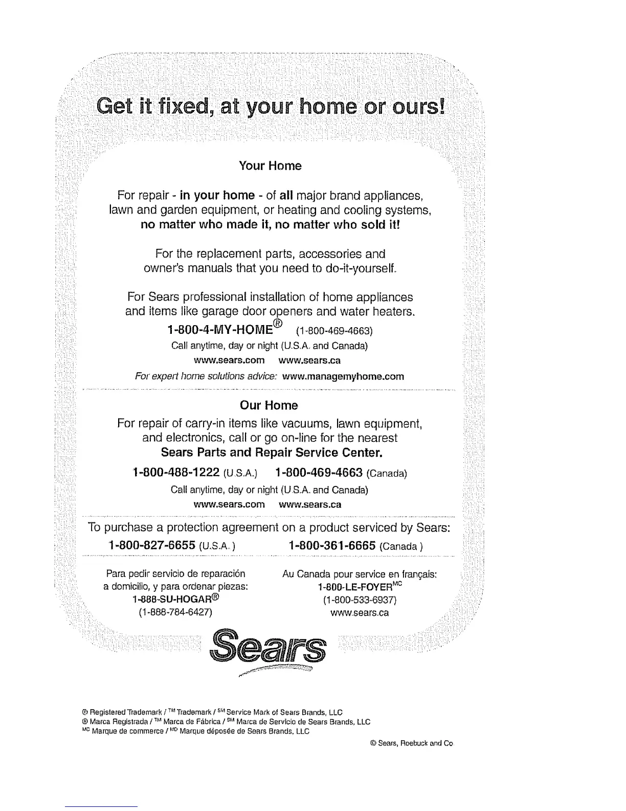 @ Marca Registrada / T_ Marca de F&brica / sf._Me{ca de Servlcie de Sears Brands, LLC