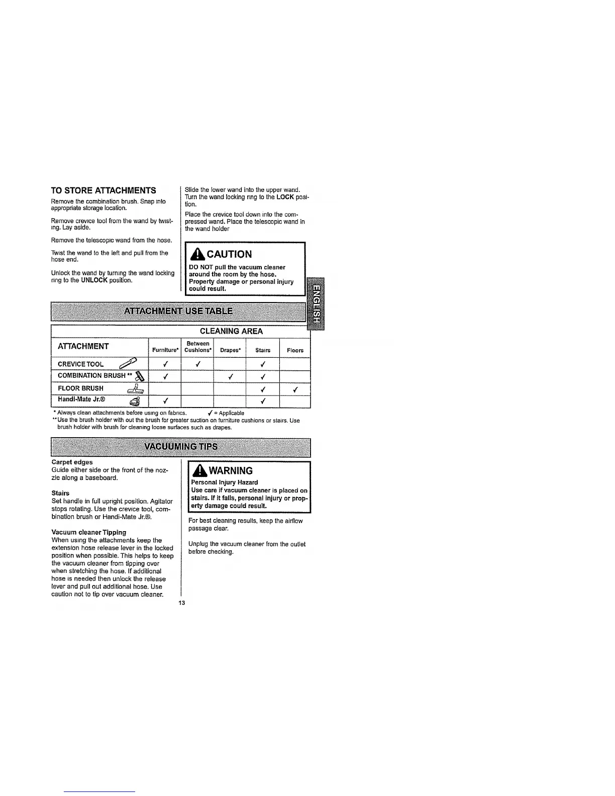 caution not to tip over vacuum cleaner.