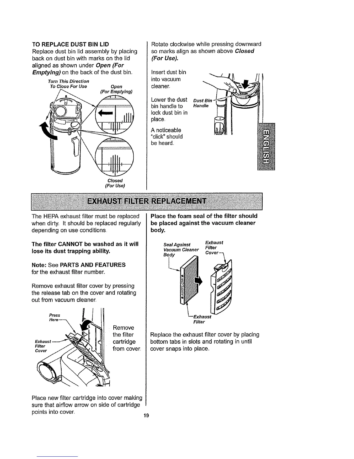 Replace the exhaust filter cover by placing