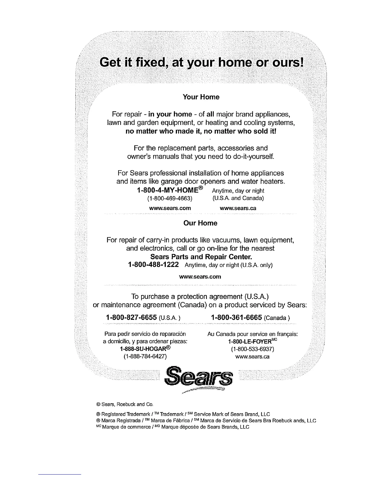 ® Registered Trademark / Trademark / Service Mark of Sears Brand, LLC