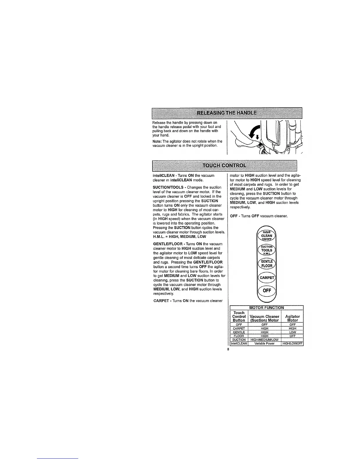 MEDIUM, LOW, and HIGH suction levels