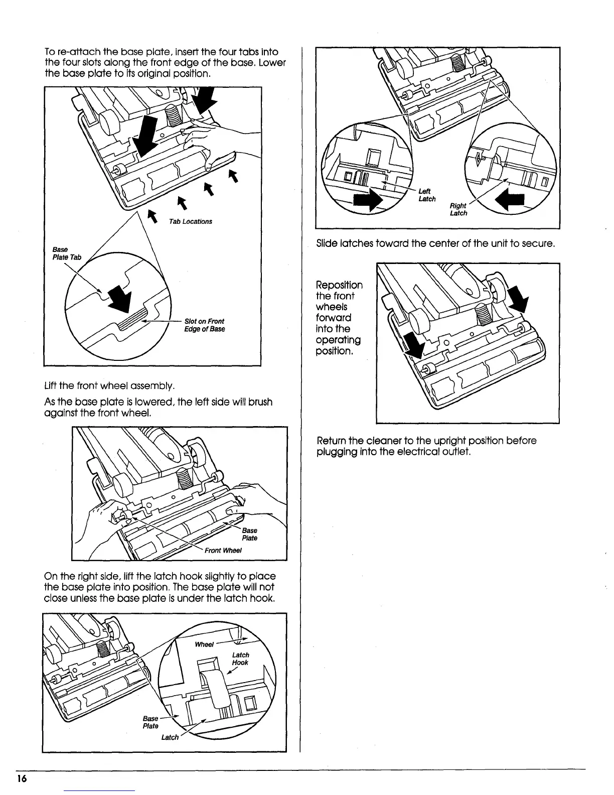 To re-attach the base plate, insert the four tabs into