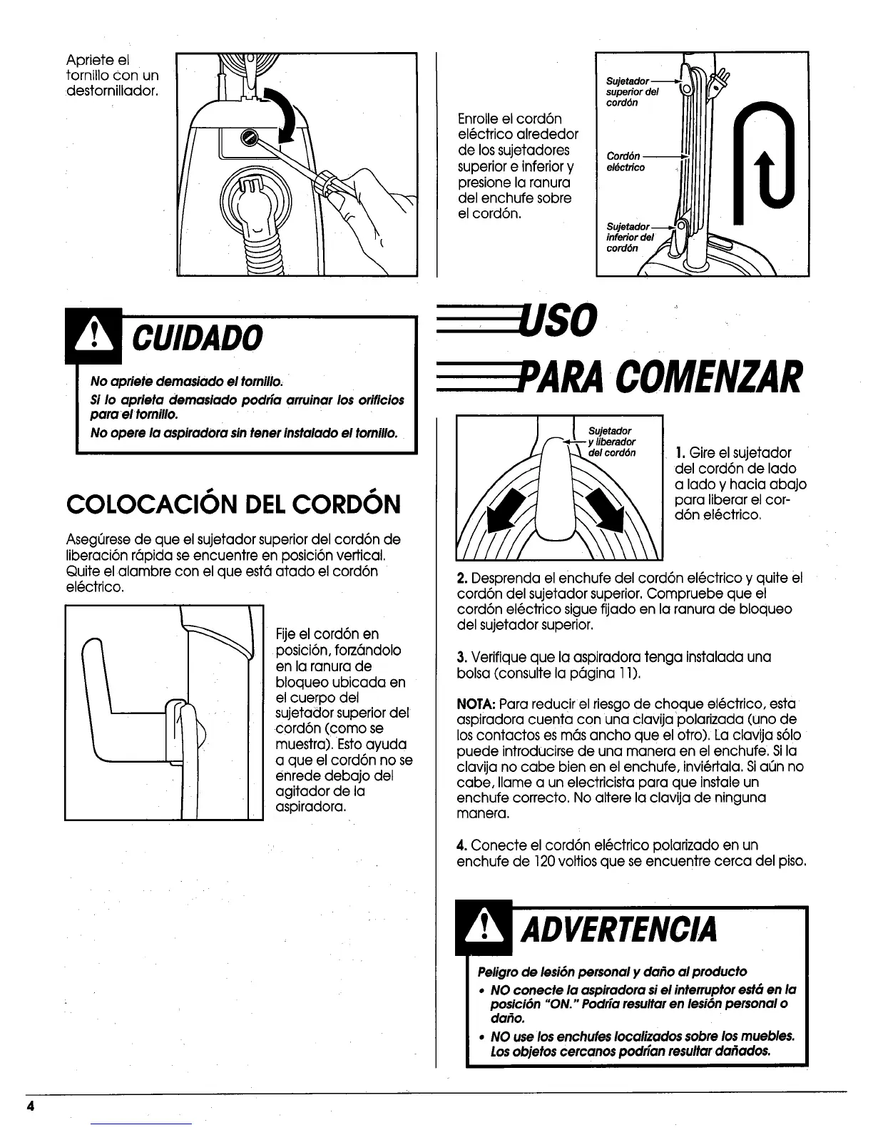 Asegerese de que el sujetador superior del cord6n de