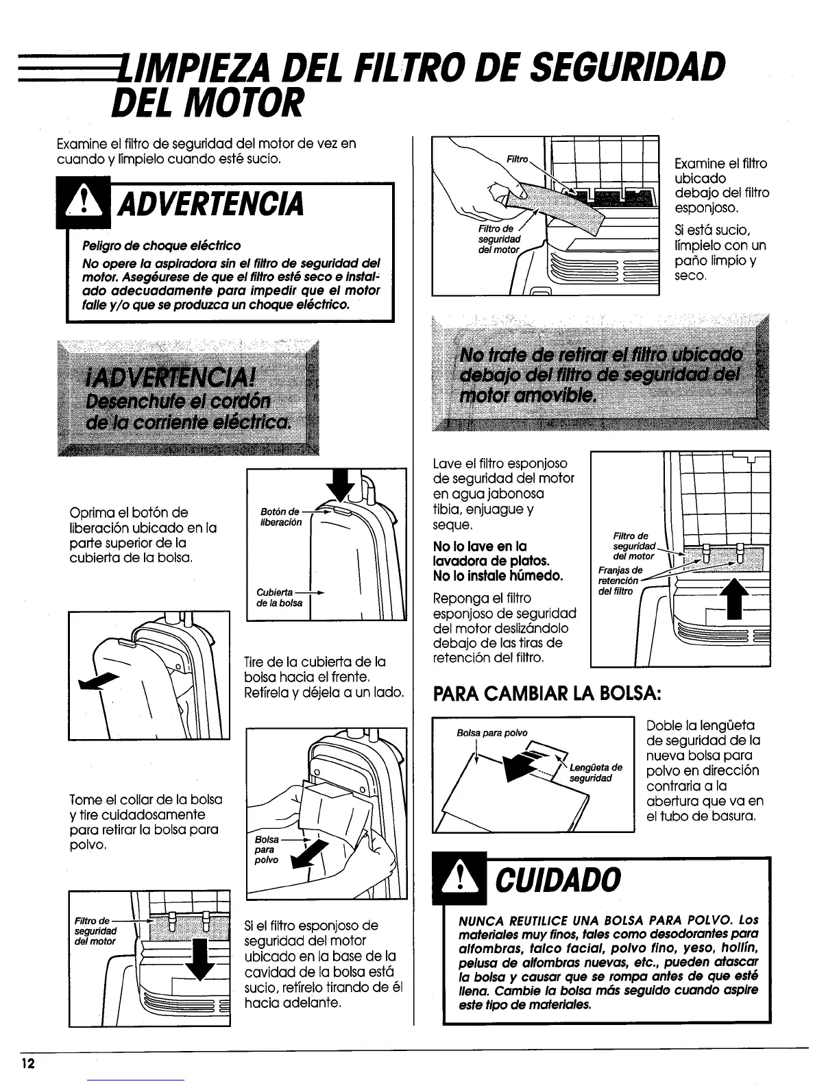 NUNCA REUTILICE UNA BOLSA PARA POLVO. Los