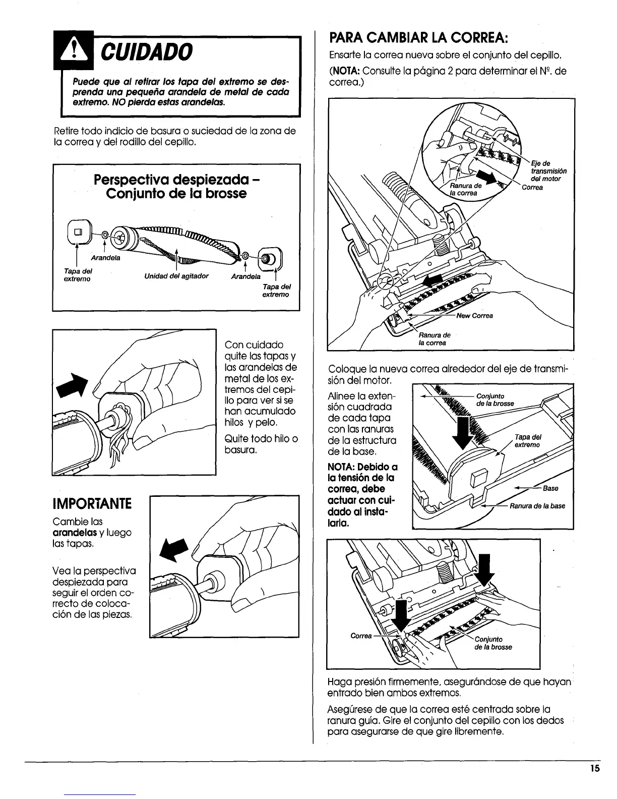 Ensarte la correa nueva sobre el conjunto del cepillo,