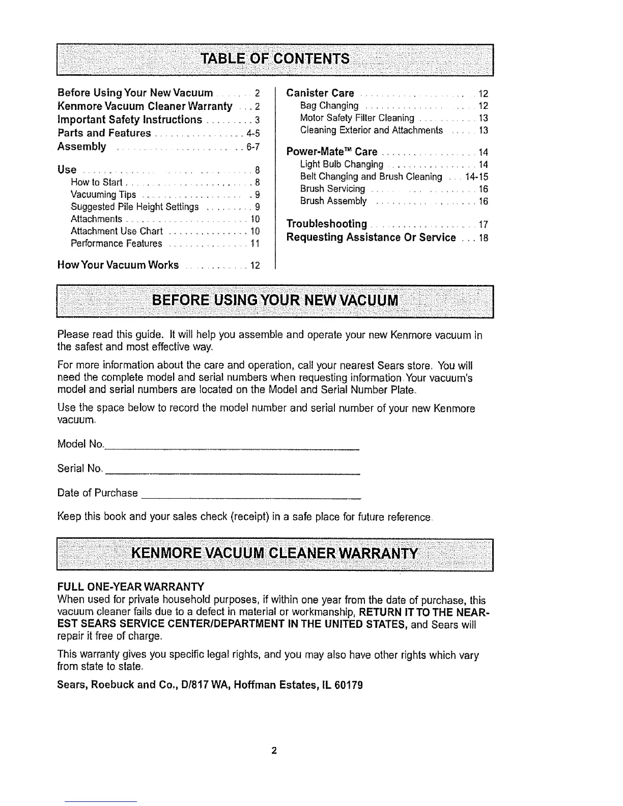 Please read this guide. It will help you assemble and operate your new Kenmore vacuum in