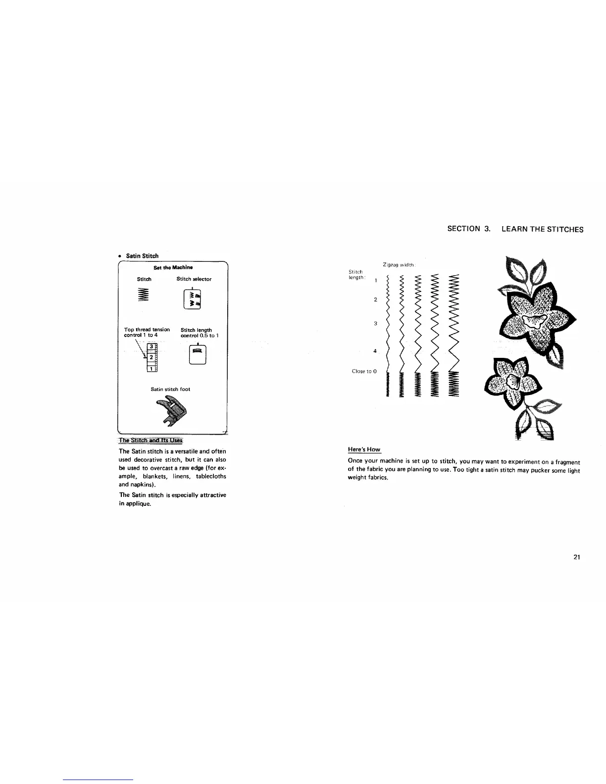 of the fabric you are planning to use.Too tight a satin stitch may pucker some light