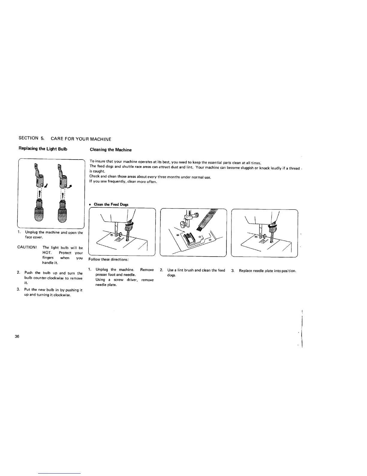 SECTION 5, CARE FOR YOUR MACHINE
