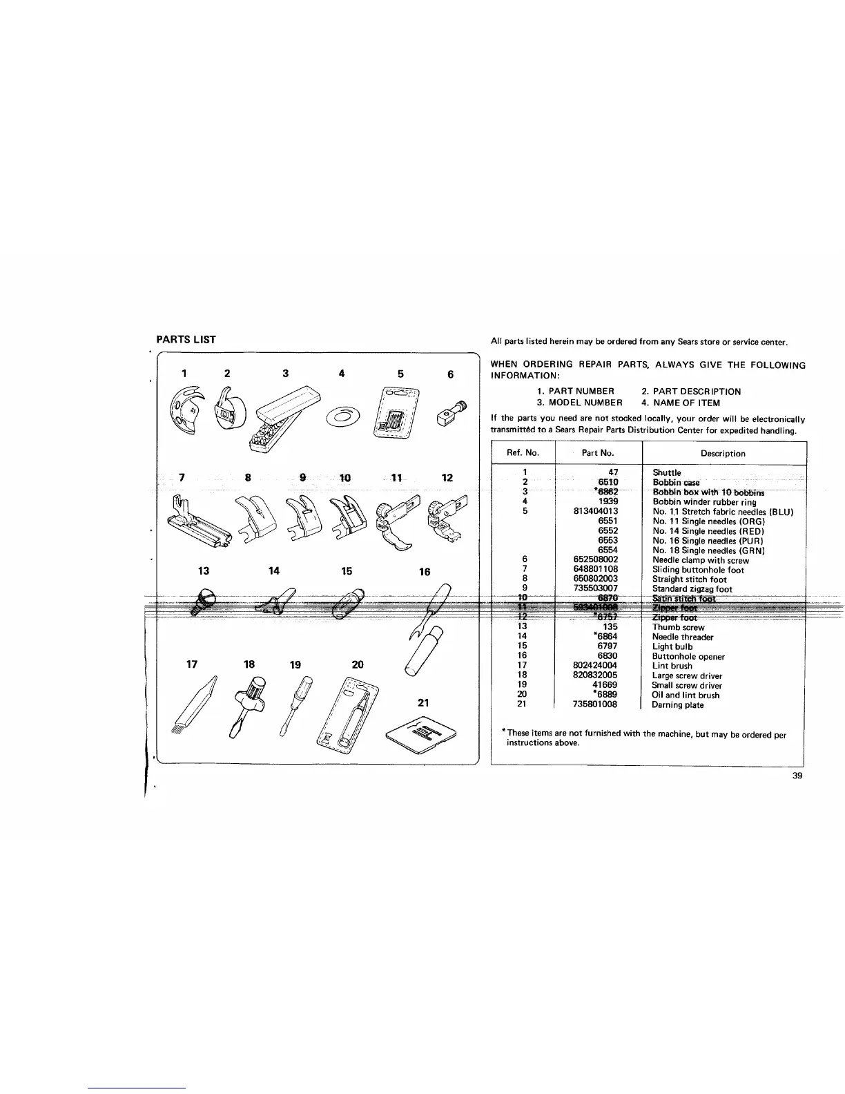 PARTS LIST All parts listed herein may be ordered from any Searsstore or servicecenter.