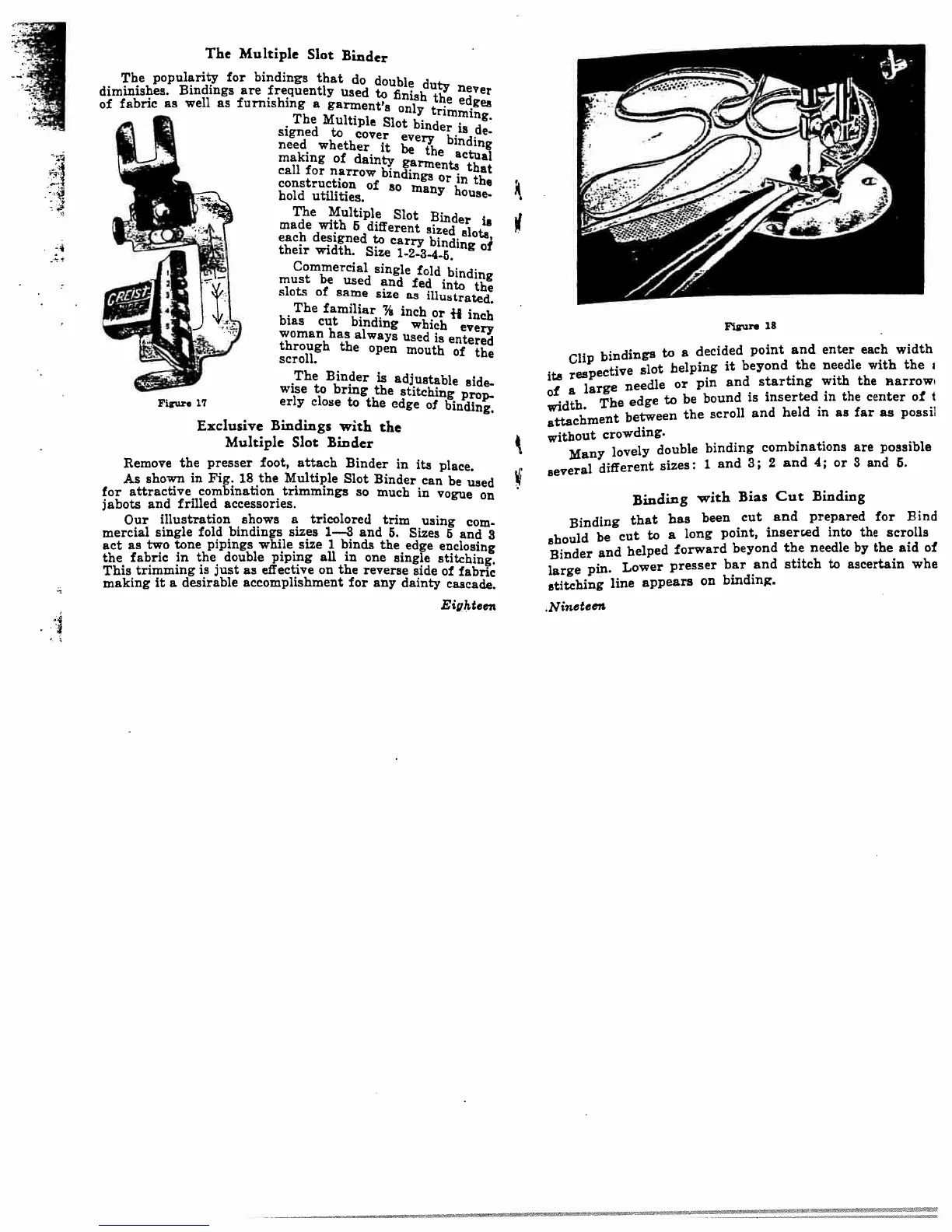 Kenmore 117.813 - The Multiple Slot Binder; Exclusive Bindings with the Multiple Slot Binder; Binding with Bias Cut Binding