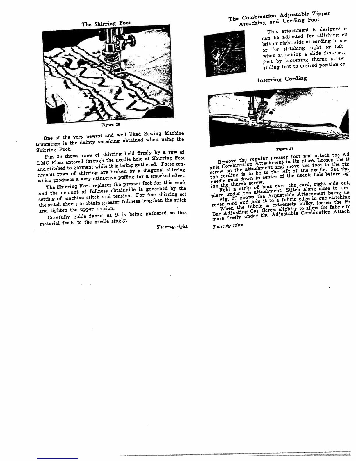 Kenmore 117.813 - The Shirring Foot; The Combination Adjustable Zipper Attaching and Cording Foot; Inserting Cording