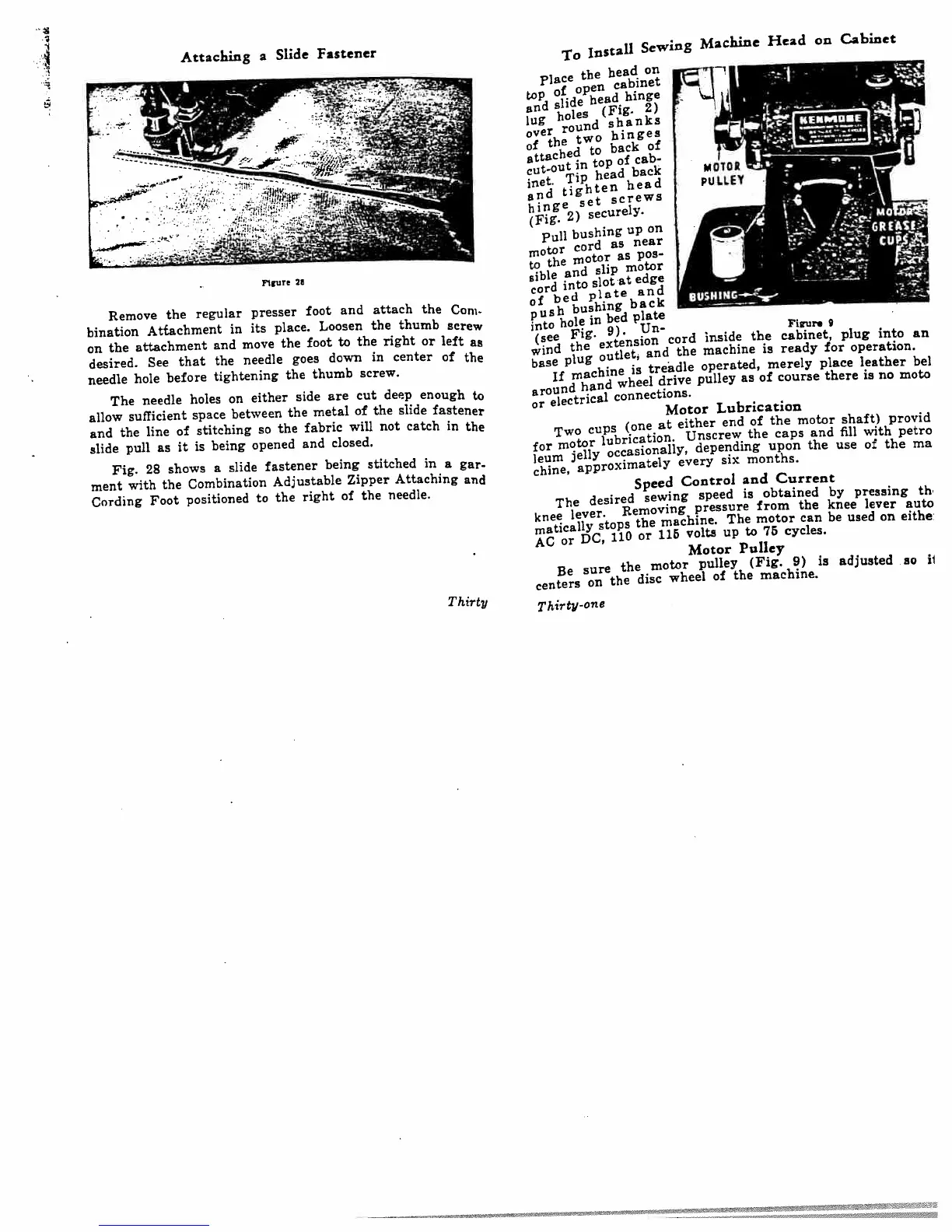 Kenmore 117.813 - Machine Head Cabinet Installation; Sewing Machine Motor Lubrication