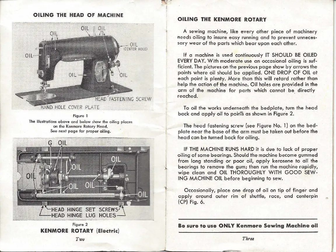 Kenmore 117-95 - Oiling the Kenmore Rotary Sewing Machine; Oiling Points on the Machine Head; Oiling Under the Bedplate