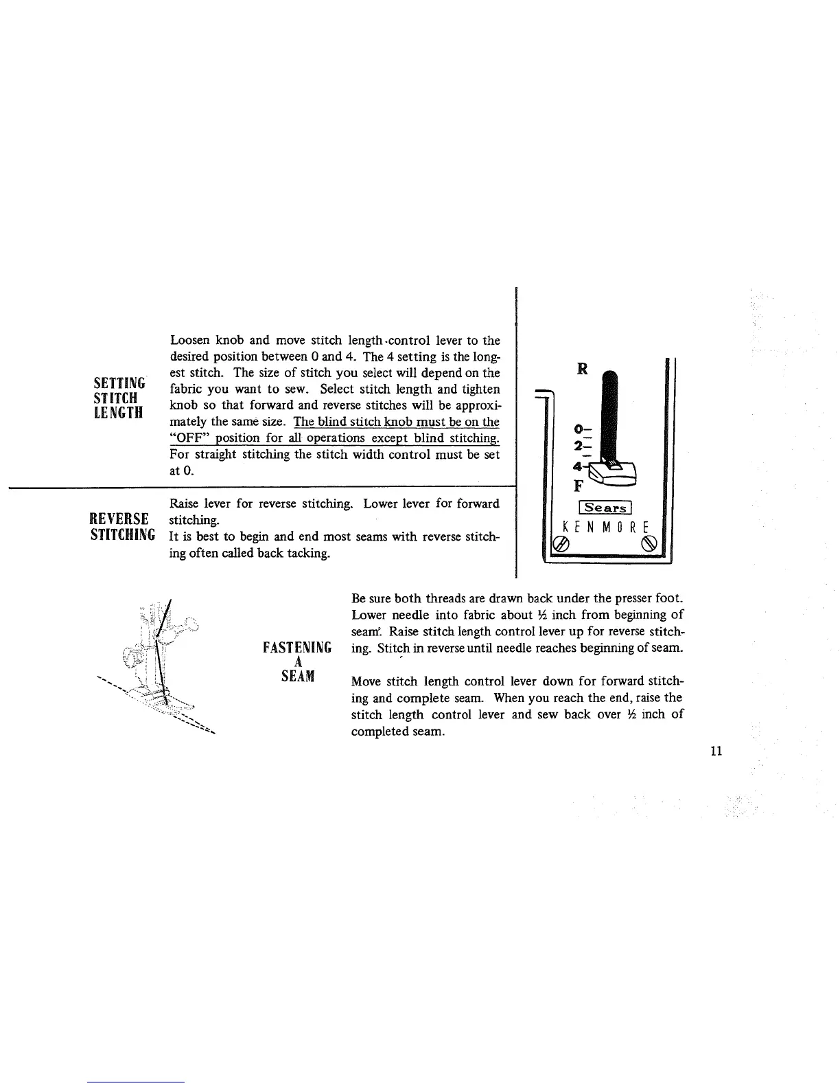 seam'. Raise stitch length control lever up for reverse stitch-
