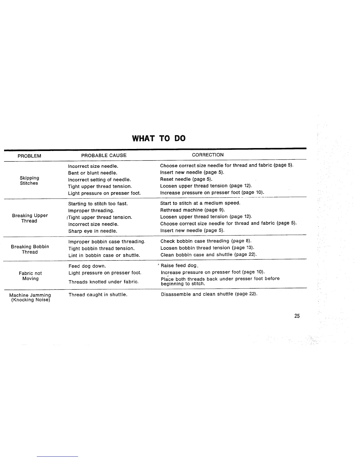 Check bobbin case threading (page 8).