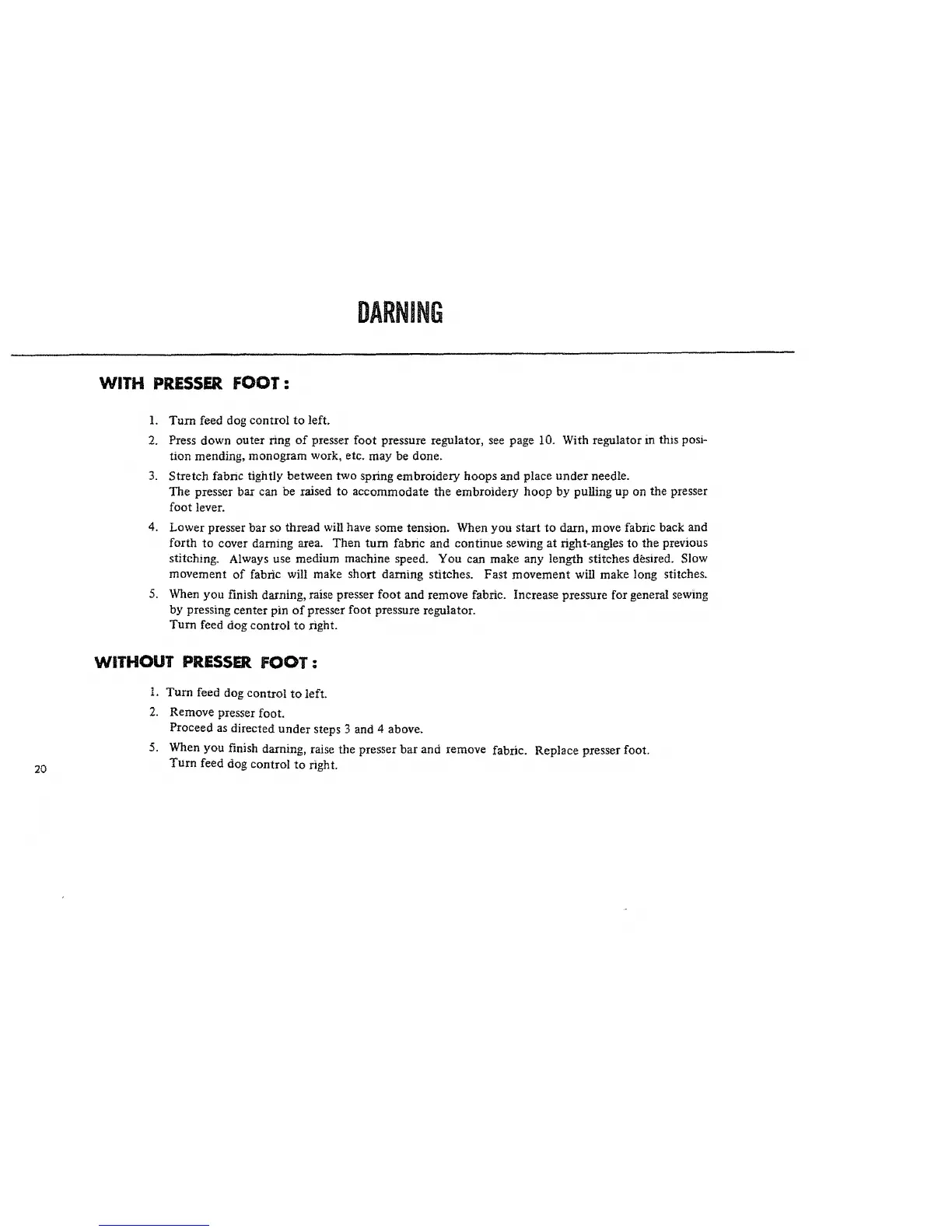 5. When you finish darning, raise the presser bar and remove fabric. Replace presser foot.