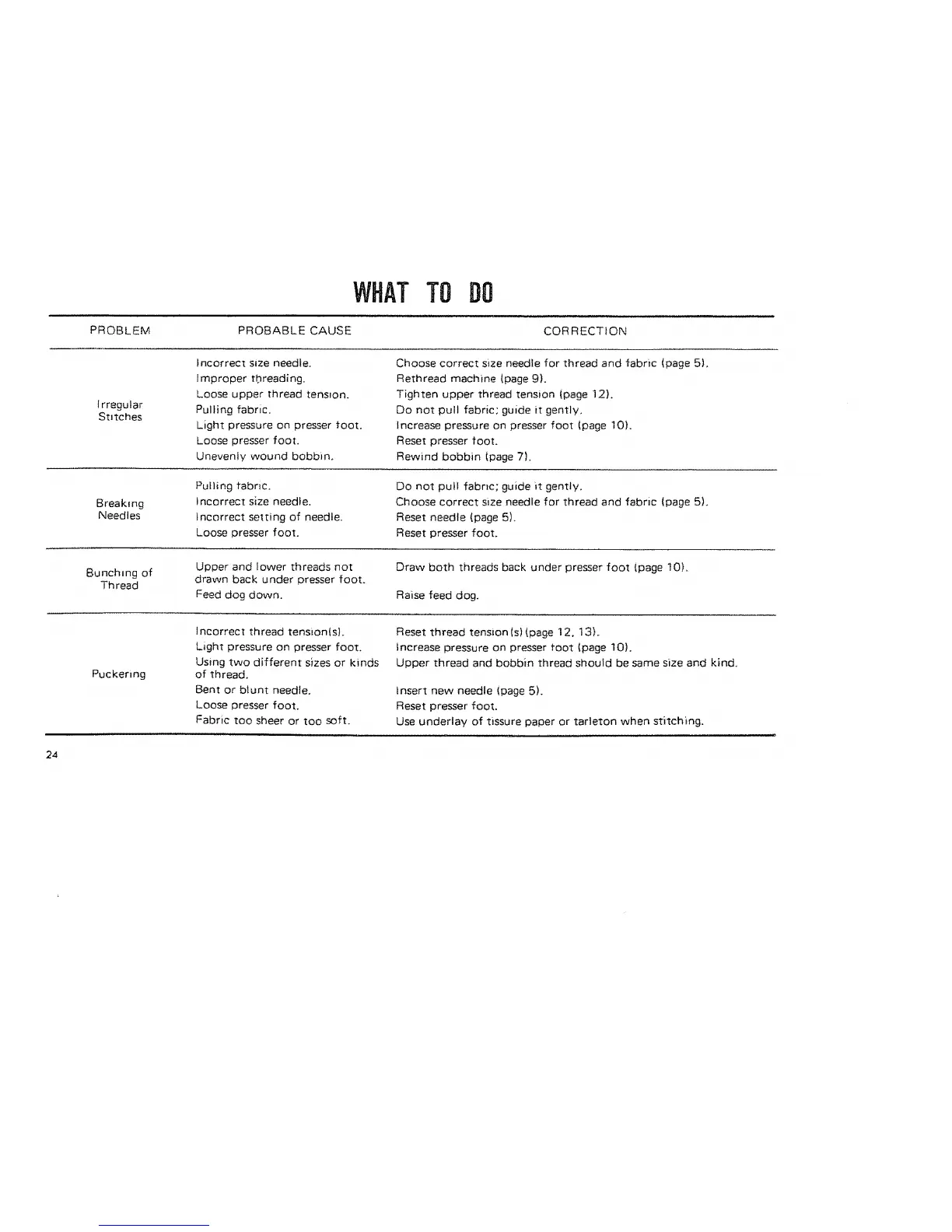 Choose correct size needle for thread and fabric (page 5),
