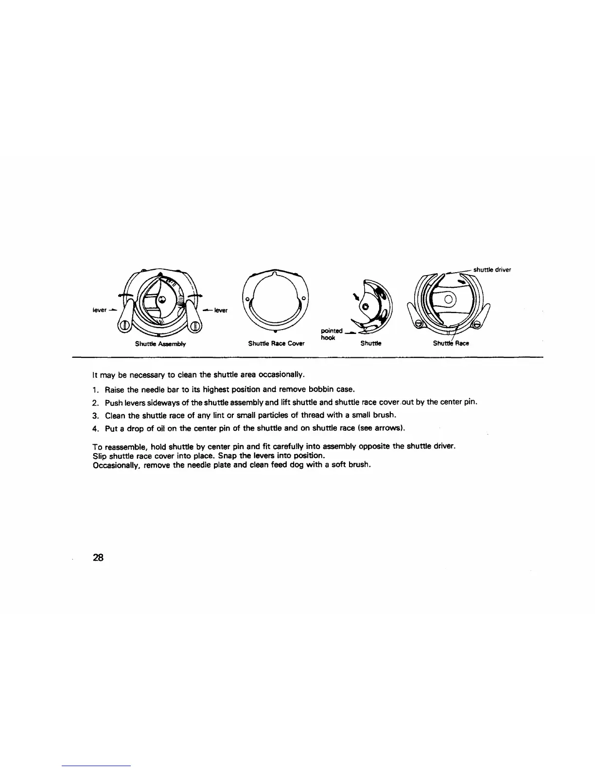 3. Clean the shuttle race of any lint or small particles of thread with a small brush.