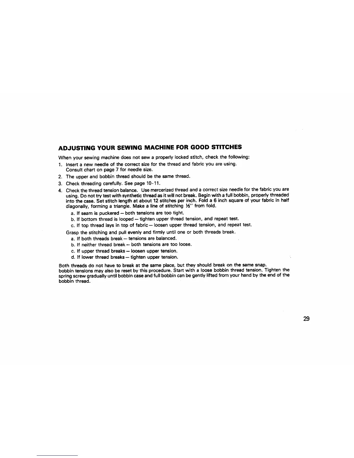 using. Do not try test with synthetic thread as it will not break. Begin with a full bobbin, properly threaded