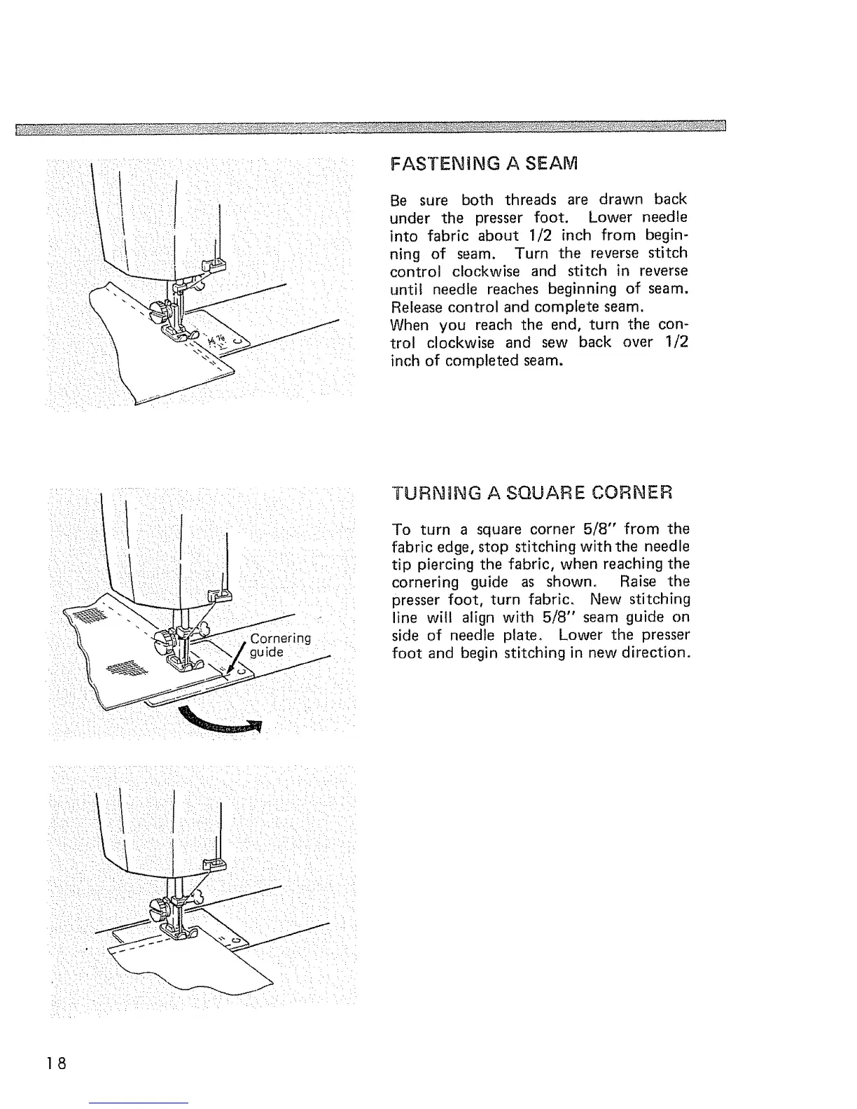 ning of seam, Turn the reverse stitch