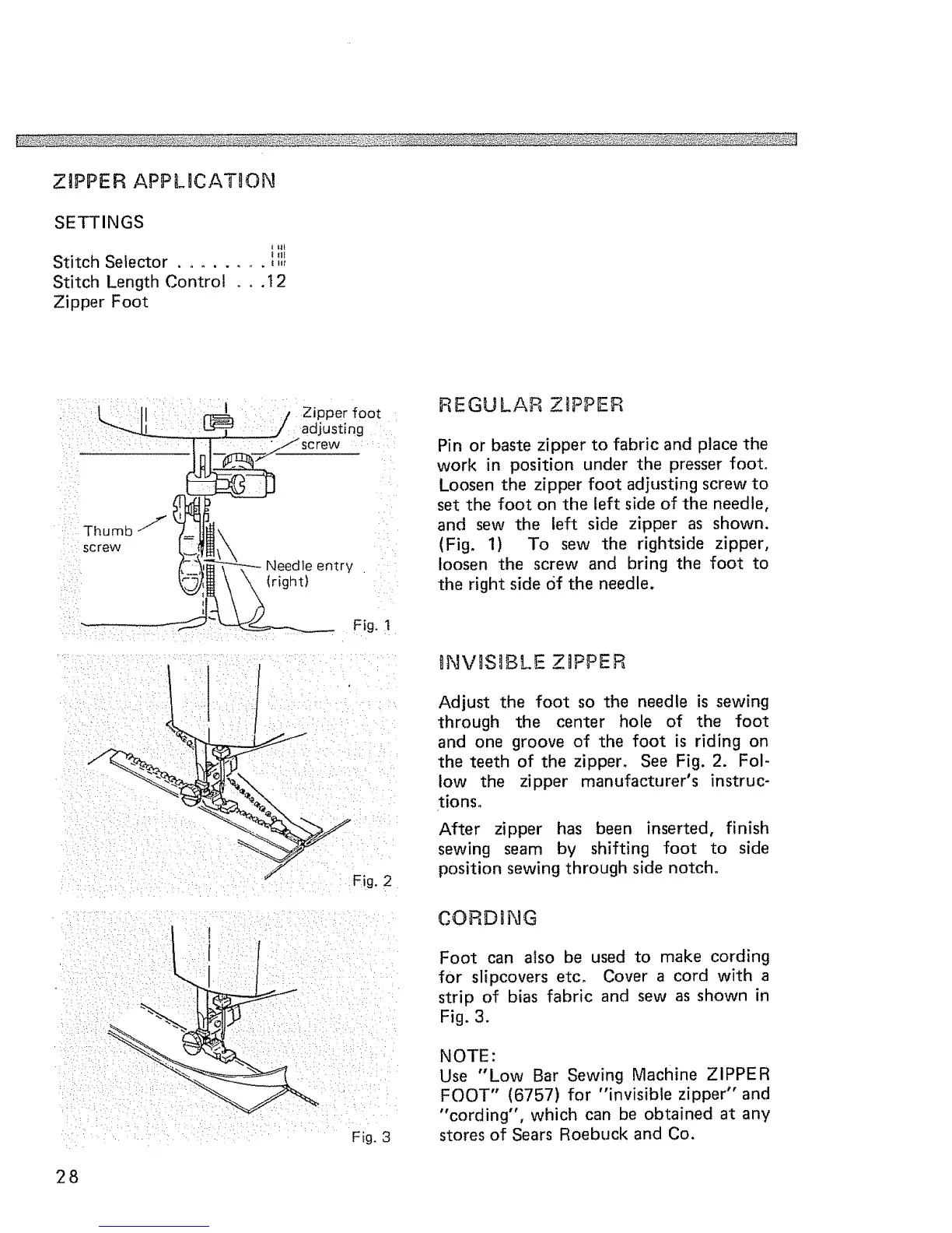 low the zipper manufacturer's instruc-